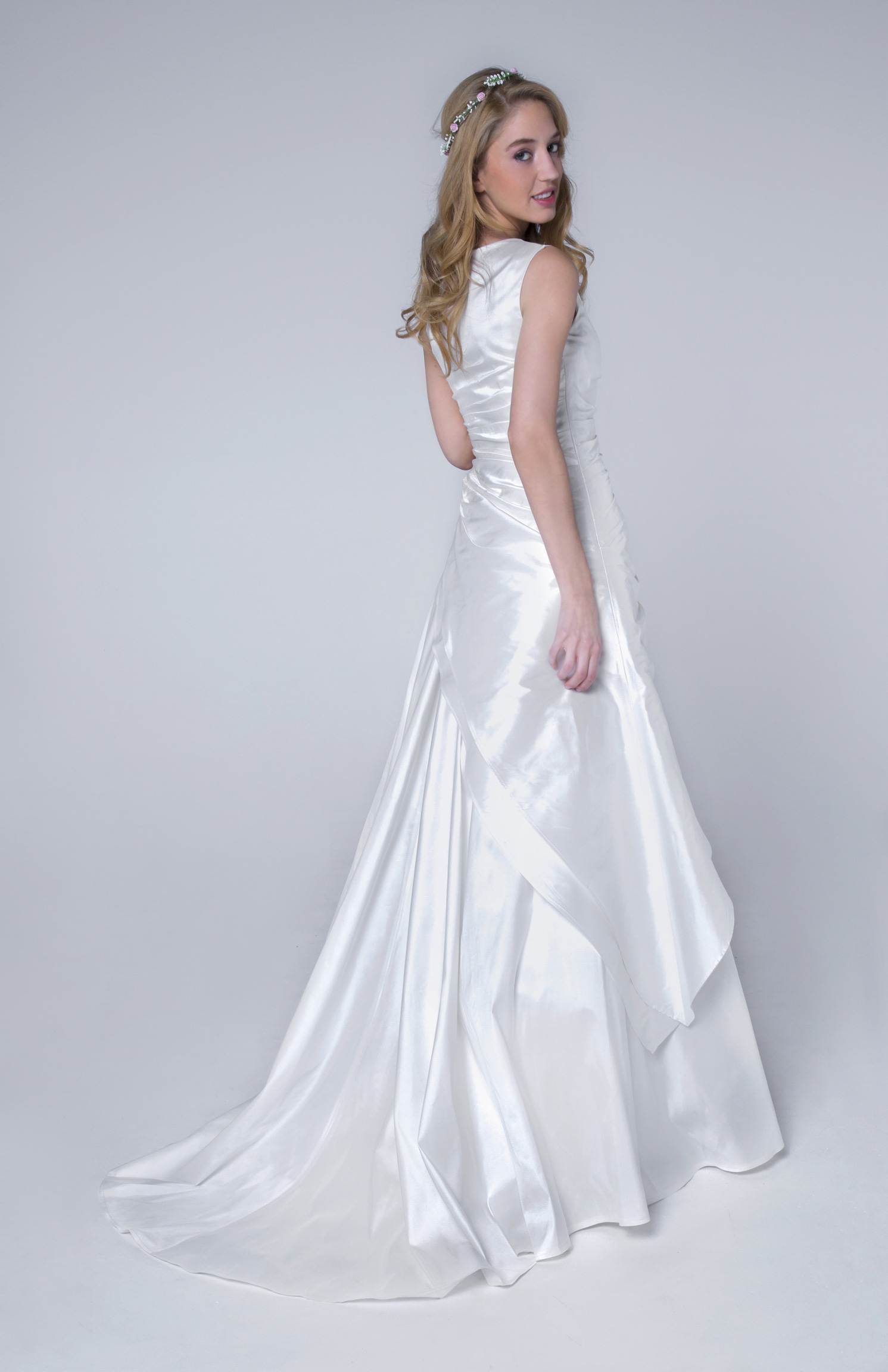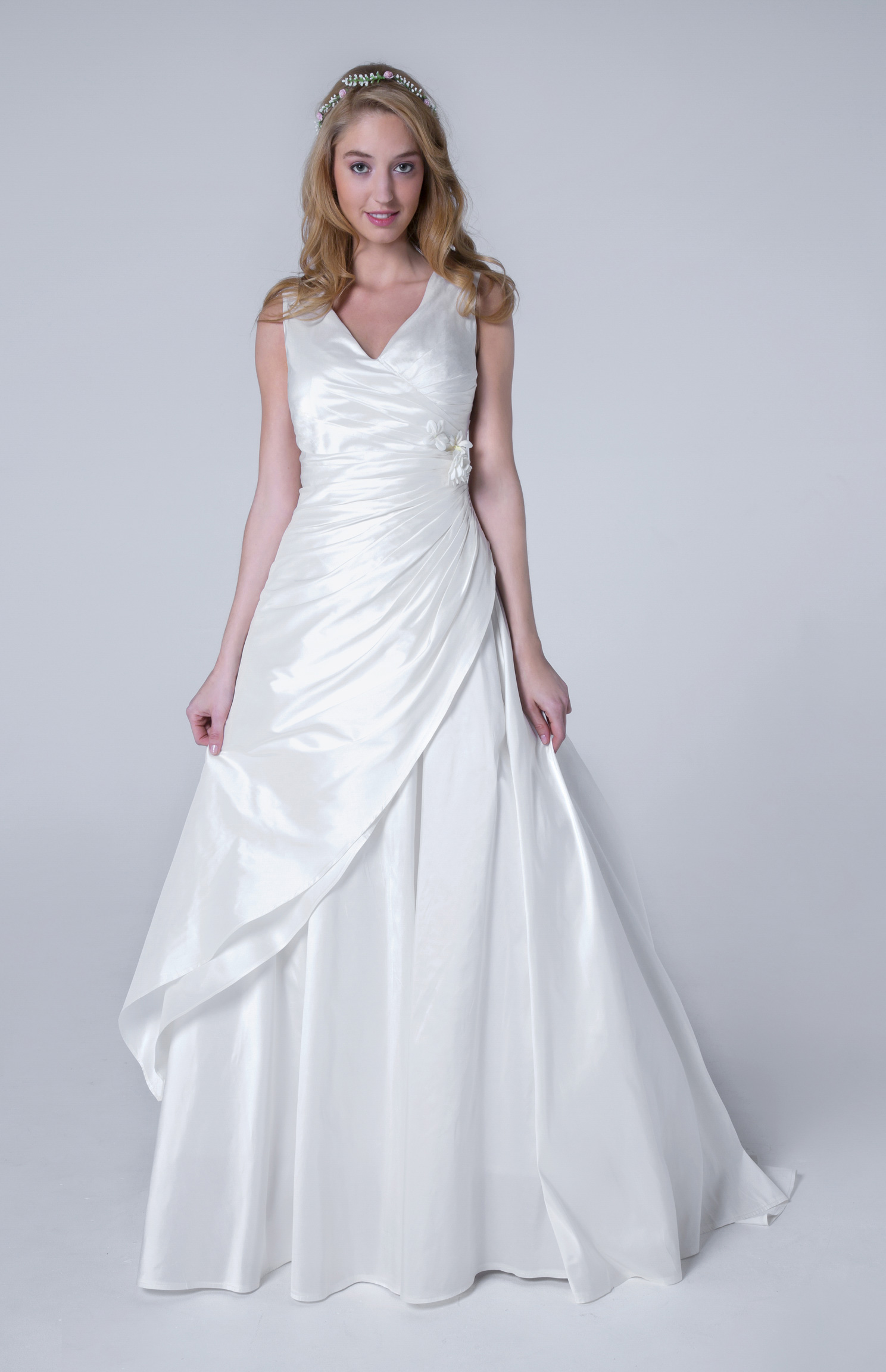 Les diagonales et le drapé affinent la taille et cassent les formes.