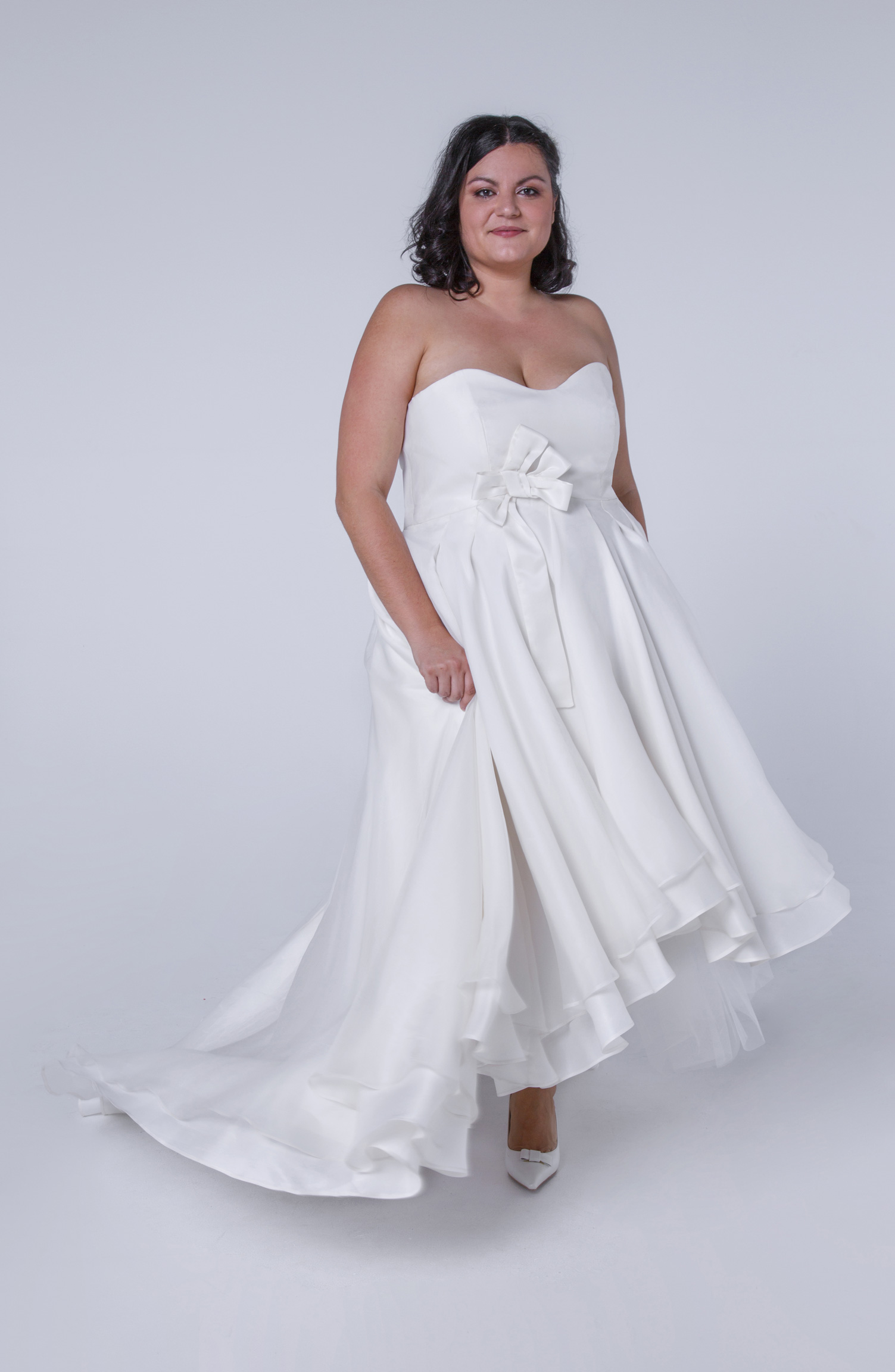 Les plis qui donnent un volume sympathique a la jupe et le noeud origami font l’originalité de ce modèle.