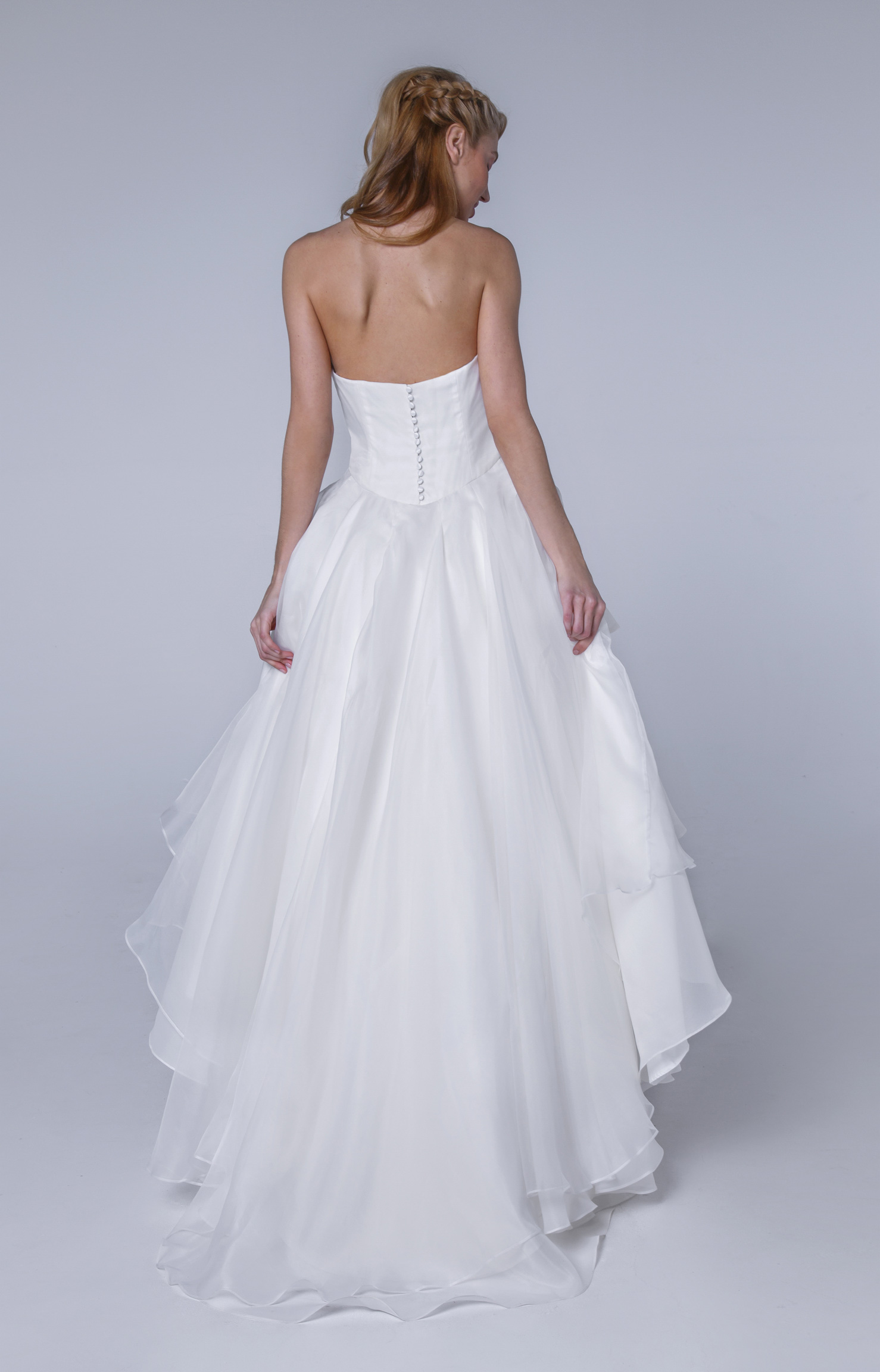 Robe bustier asymétrique en organza de soie.
