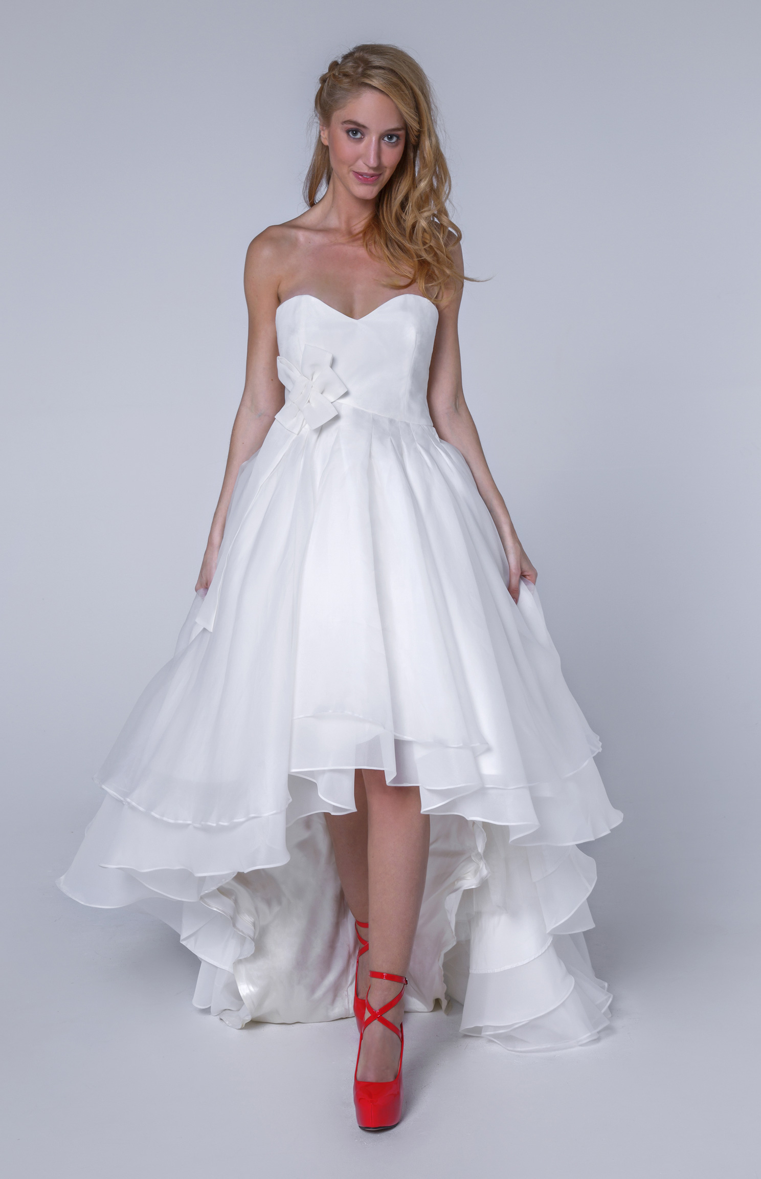 Les plis qui donnent un volume sympathique a la jupe et le noeud origami font l’originalité de ce modèle.